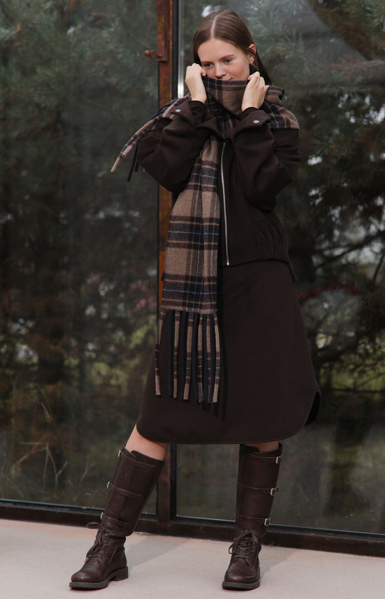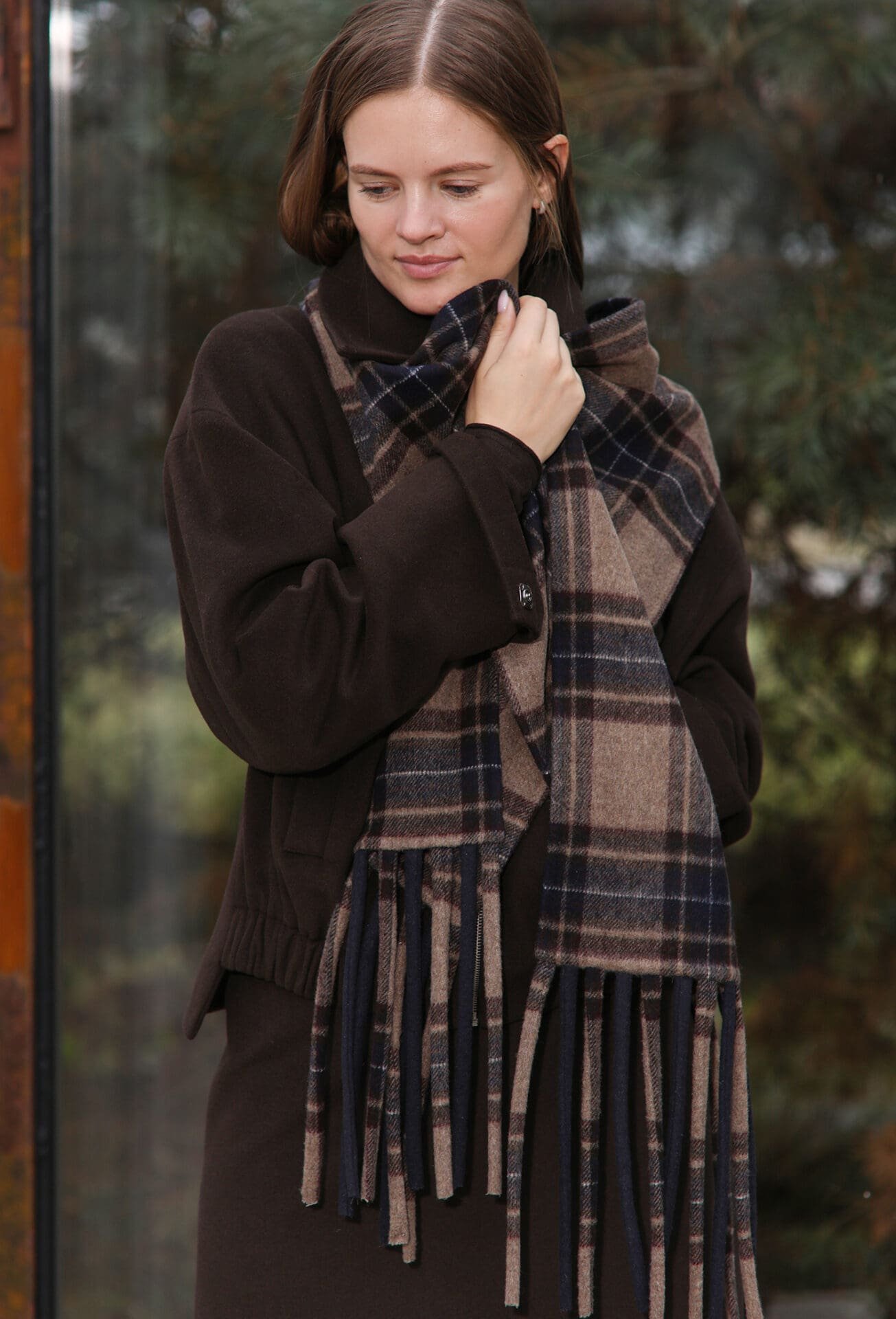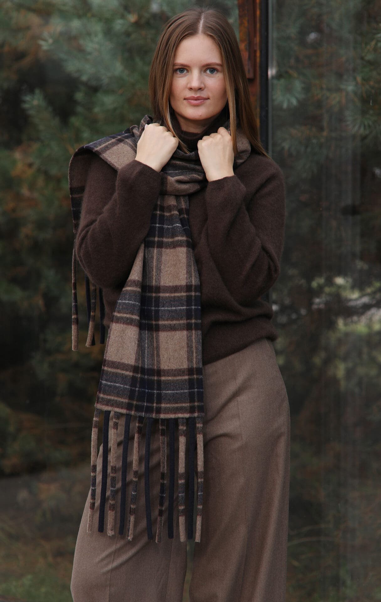 Minkštas, švelnus, jaukus – tokį šaliką norisi apsivynioti ir nebesinori nusiimti. Klasikinis languotas raštas su žemiškais atspalviais (šokolado, smėlio ir tamsiai mėlynos) suteikia elegancijos ir lengvai dera tiek su vilkimu paltu, tiek su megztiniu ar net kasdieniu miesto įvaizdžiu.