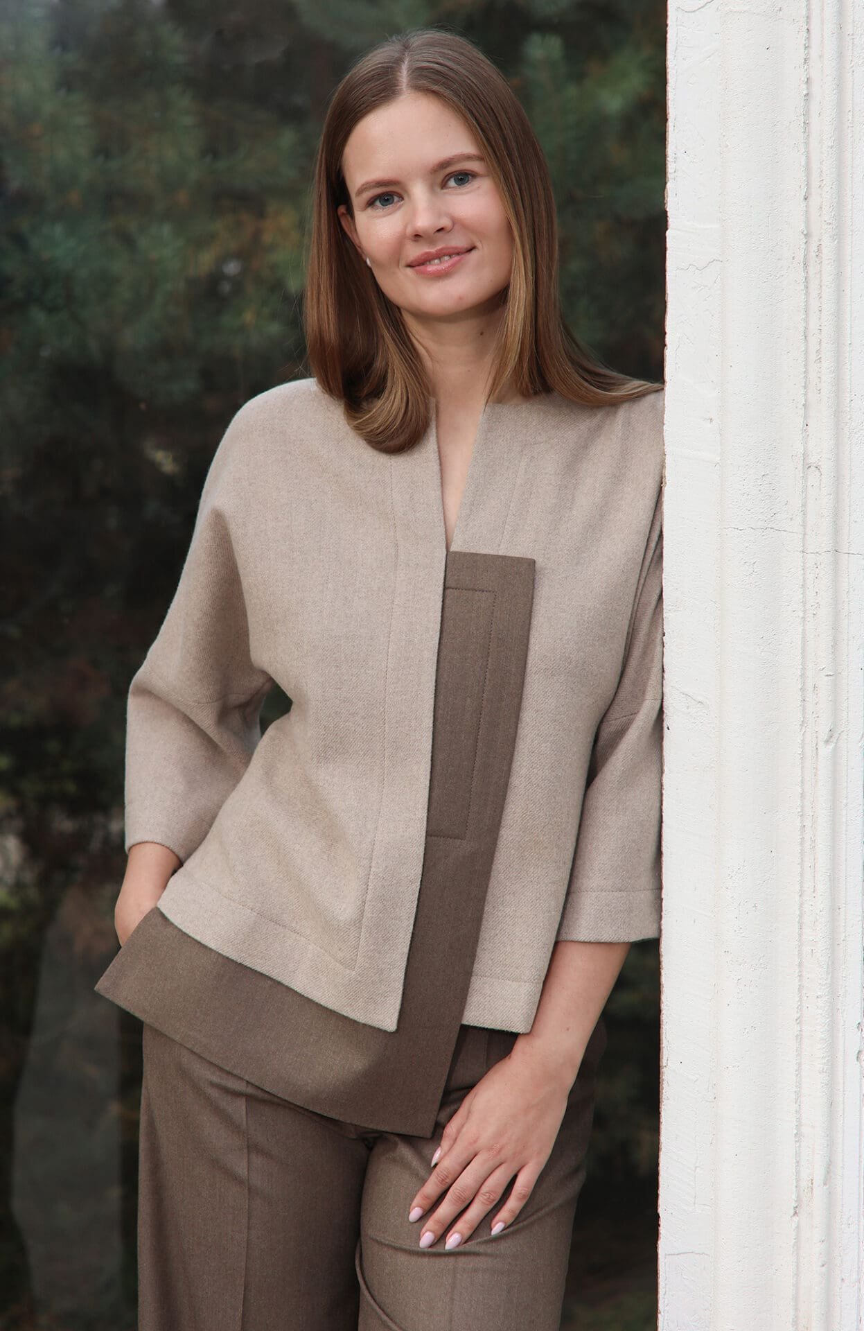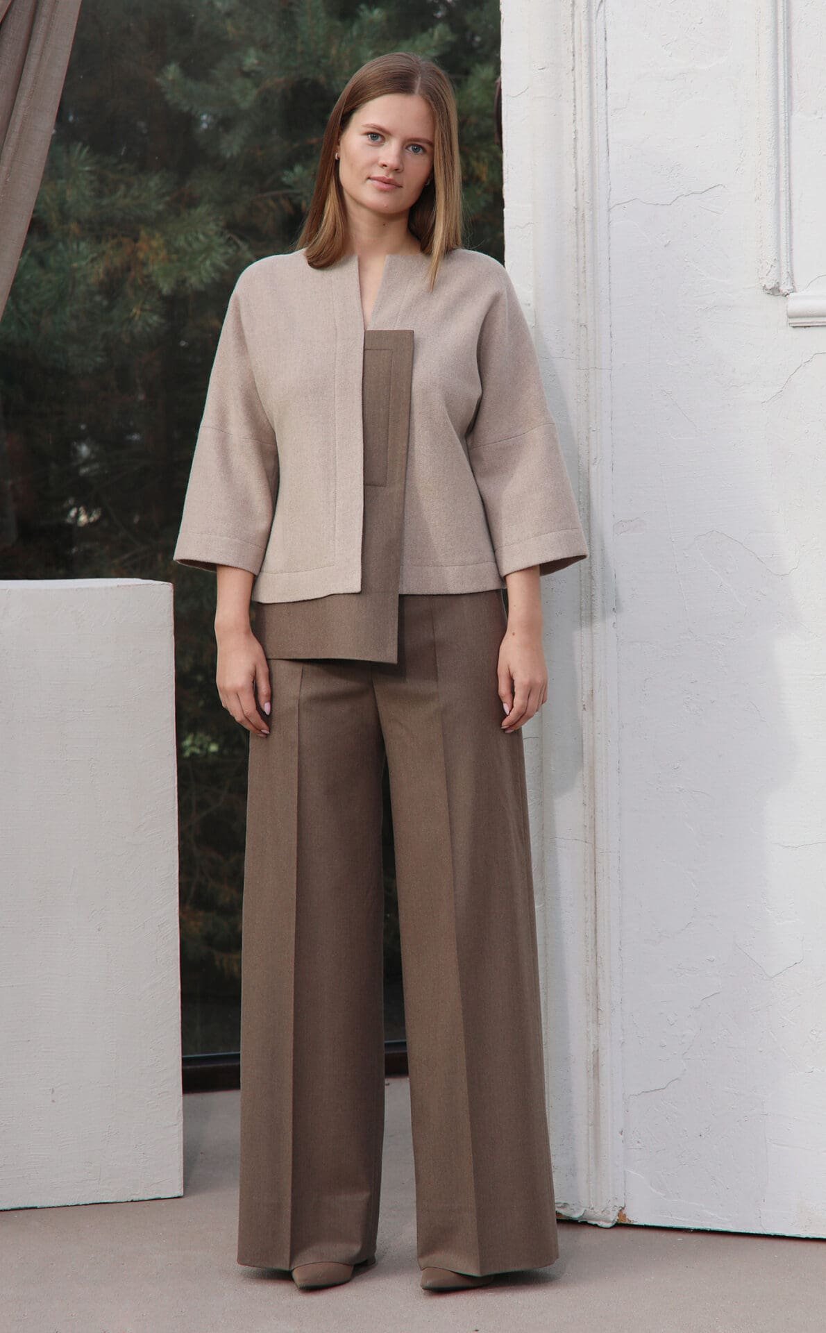 Asimetrinė kašmyro palaidinė. Dėl kimono tipo rankovių kirpimo yra patogi, nevaržanti judesių, o asimetrinės detalės suteikia jai išskirtinumo. Ji puikiai papildys tiek kiekvienos dienos derinius tiek skirtus ypatingom progoms.