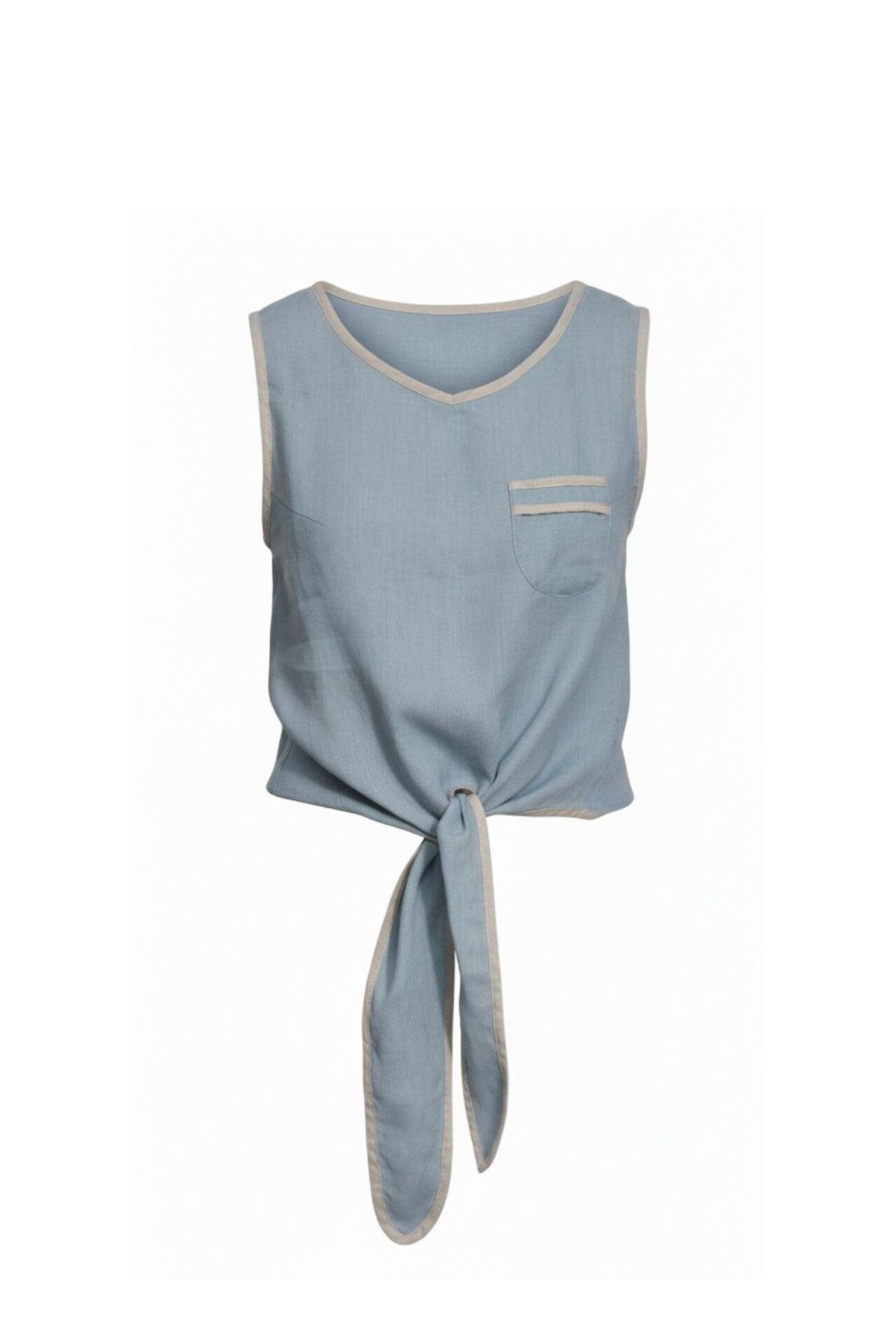 Ši berankovė palaidinė iš 100% natūralaus lino. Švelnus melsvas Smoke Blue spalvos atspalvis tobulai dera su saulės šviesa, o audinys su natūralia tekstūra suteikia lengvumo, rafinuoto pojūčio.