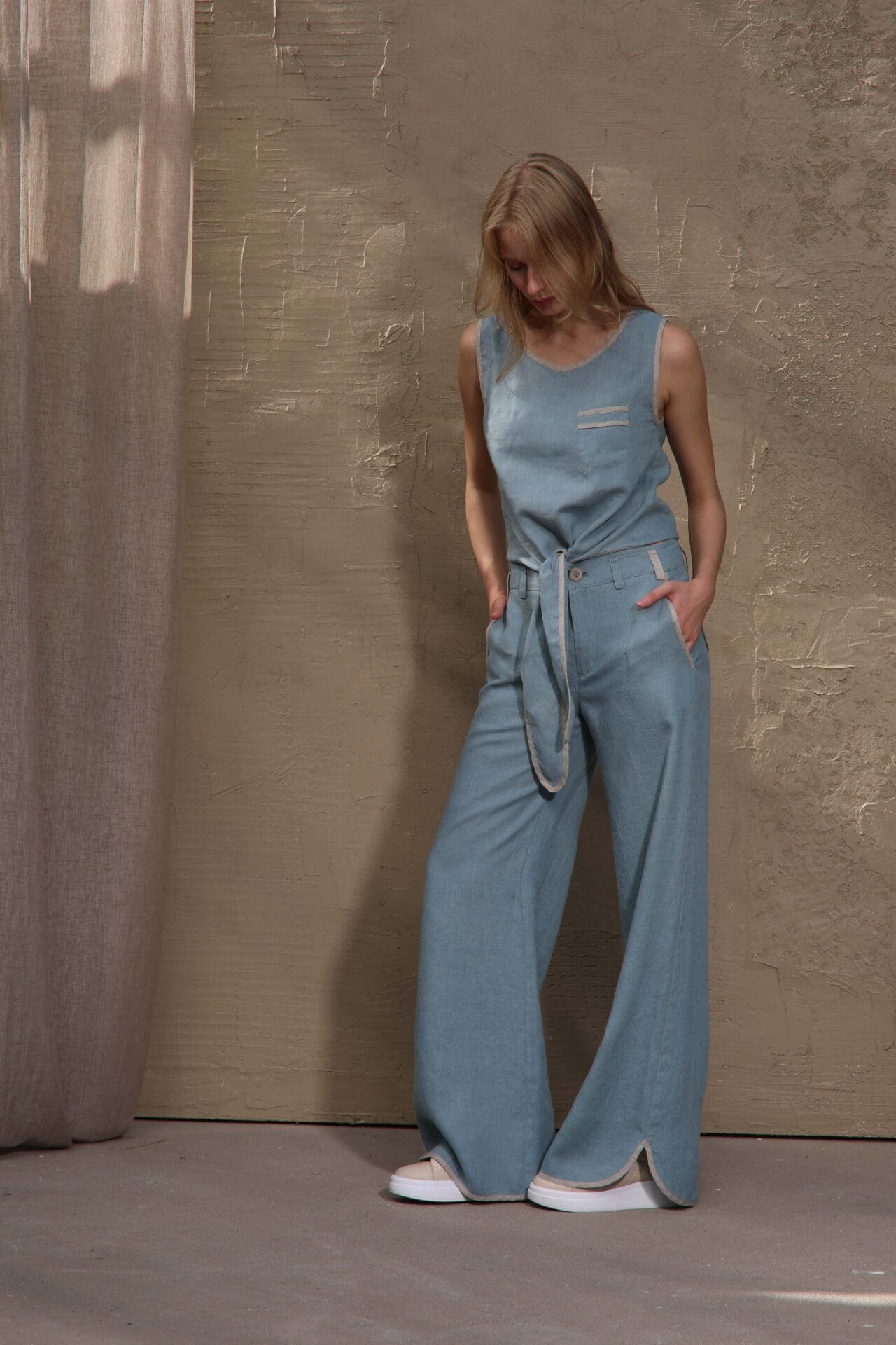– Palaidinė dekoruota natūralaus lino pavadine juostele