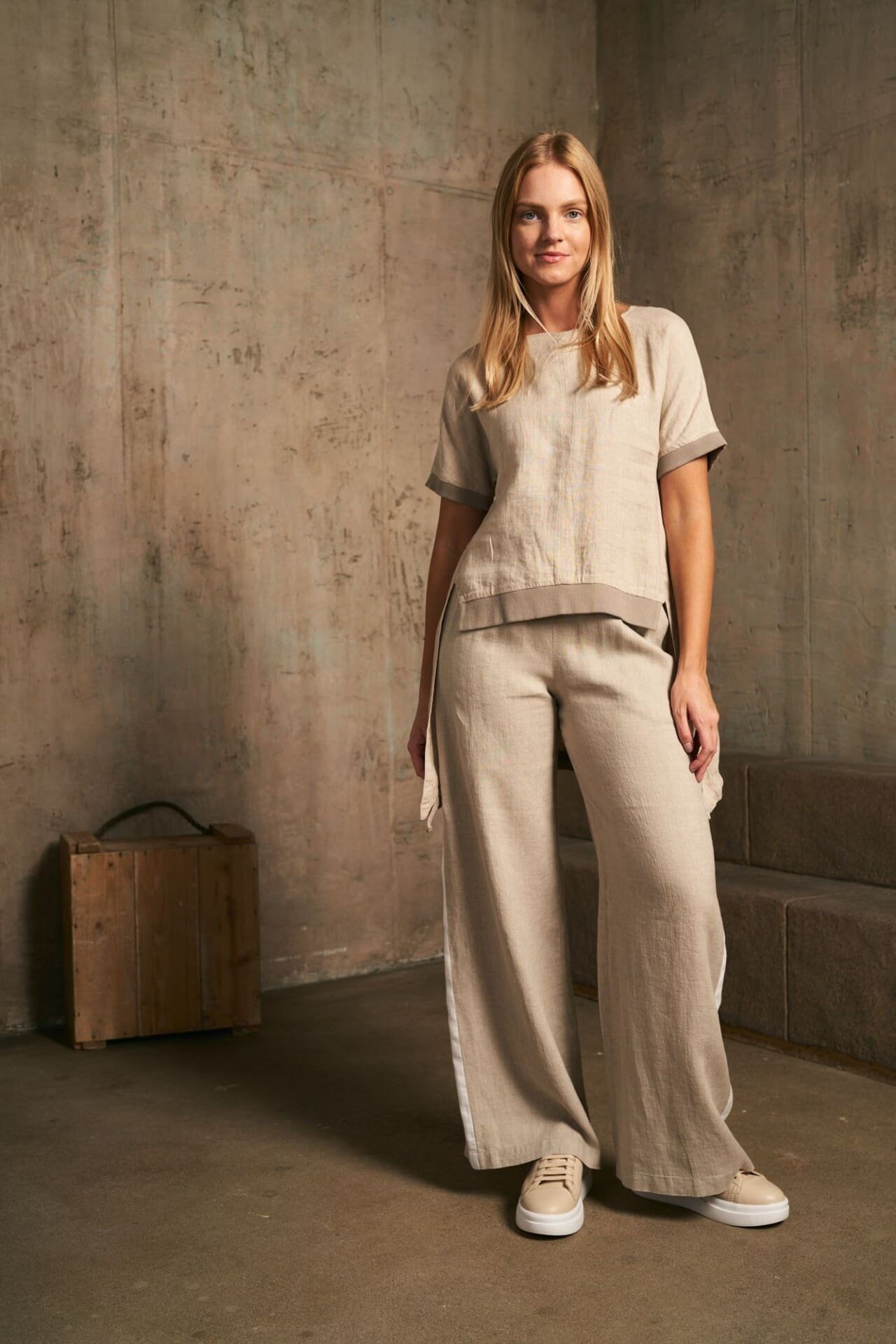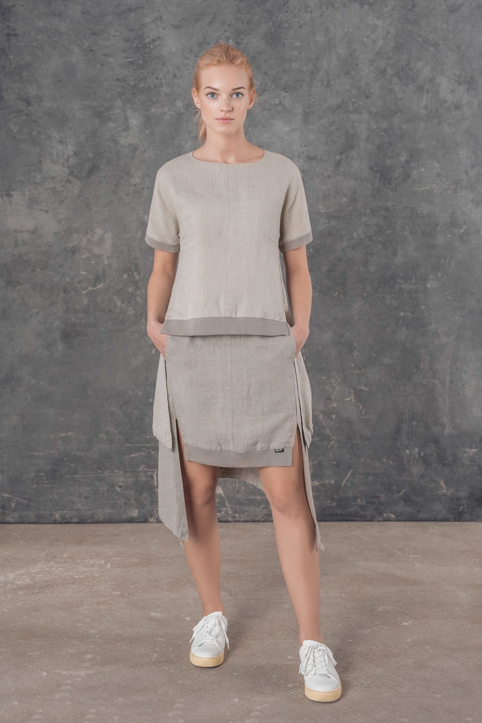Sportinio stiliaus palaidinė, deranti prie įvairiaus ilgio ir silueto sijonų, kelnių bei sijonkelnių. Suteik savo stiliui vienu metu dinamikos ir lino ramybės.