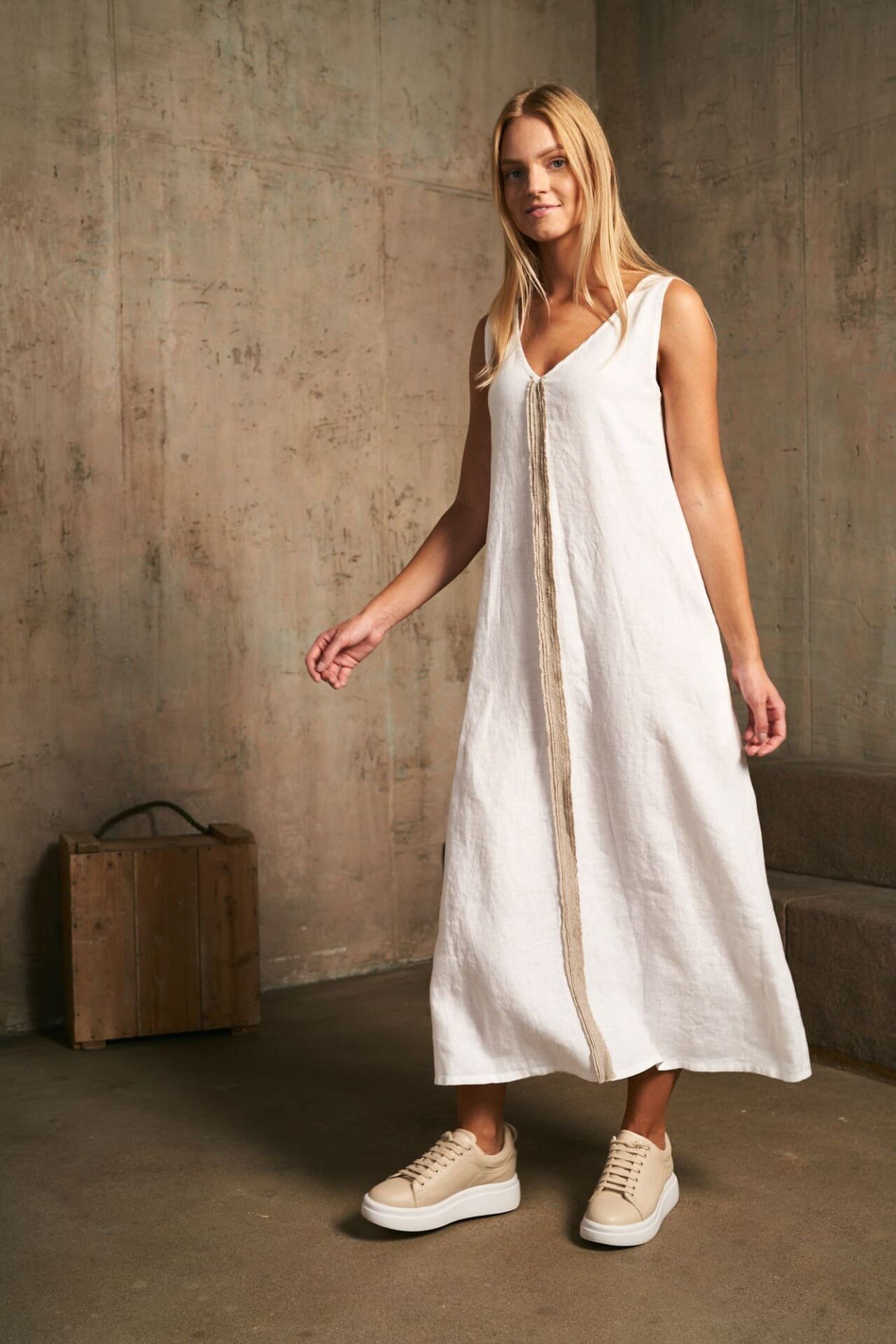 – suknelė su akcentine juosta priekyje