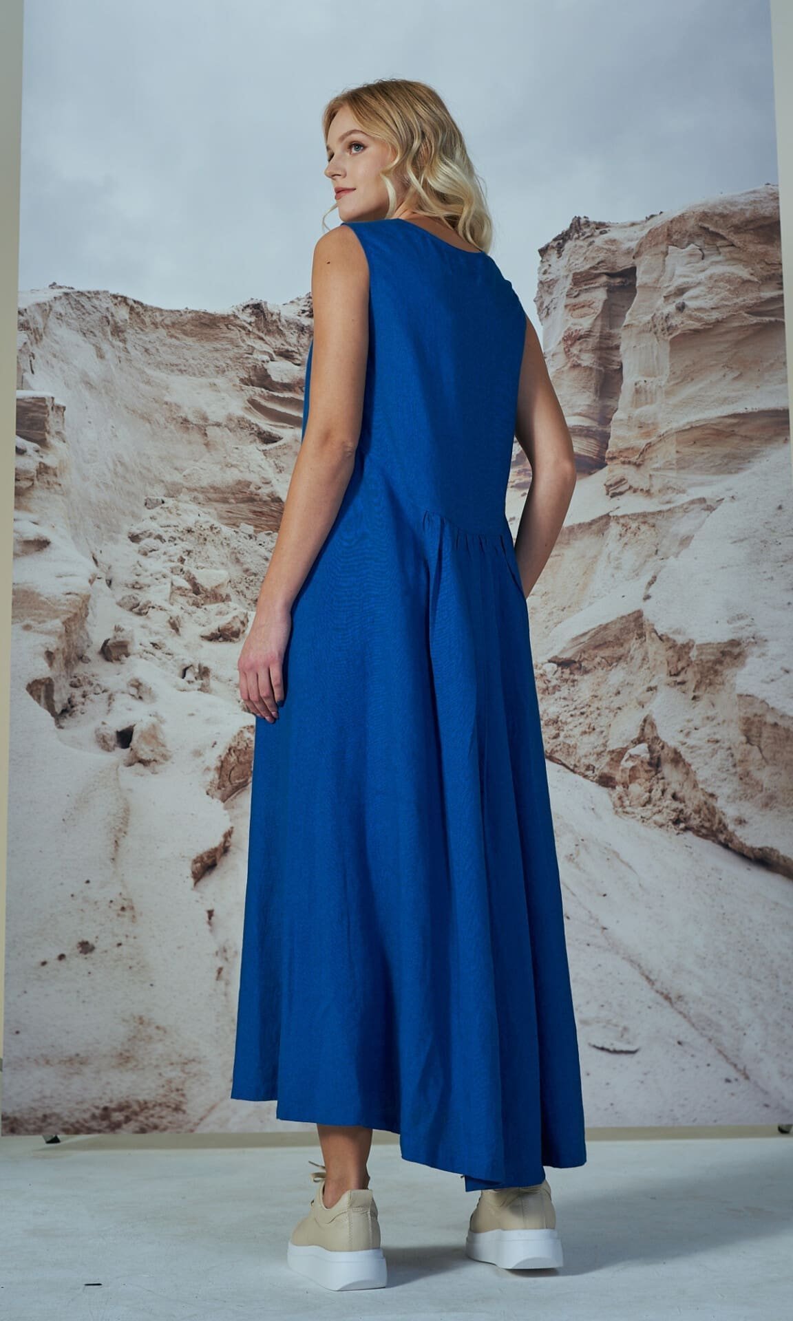 – Ilga tiesesnio silueto lininė suknelė