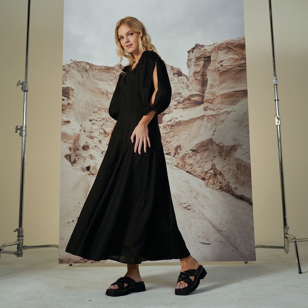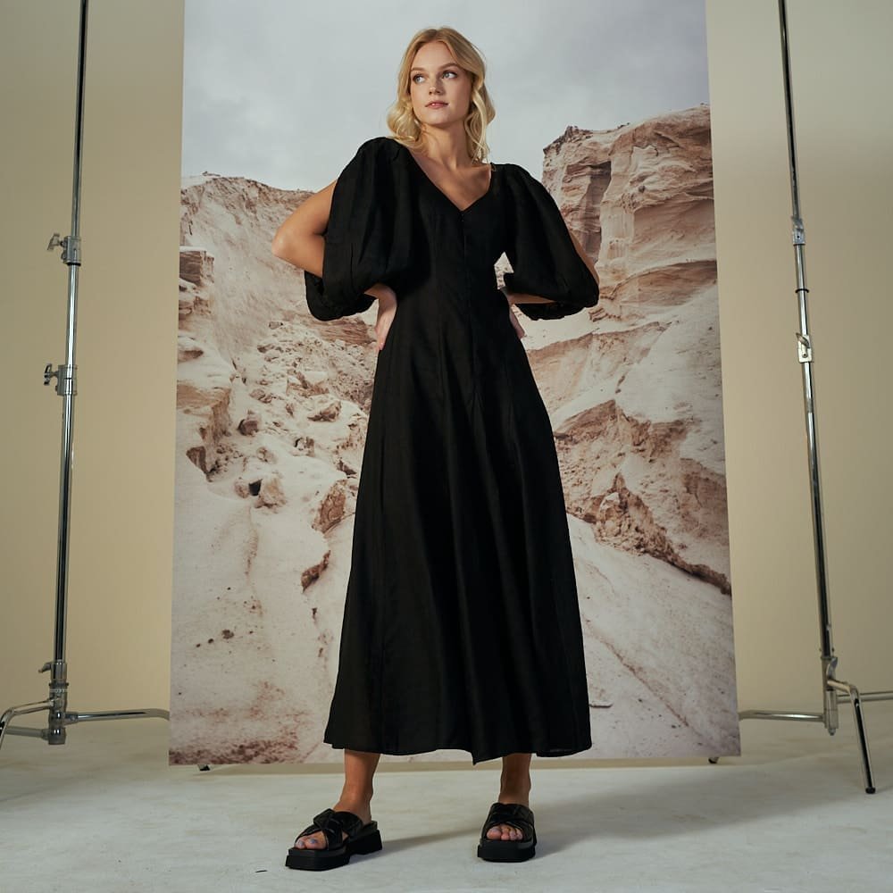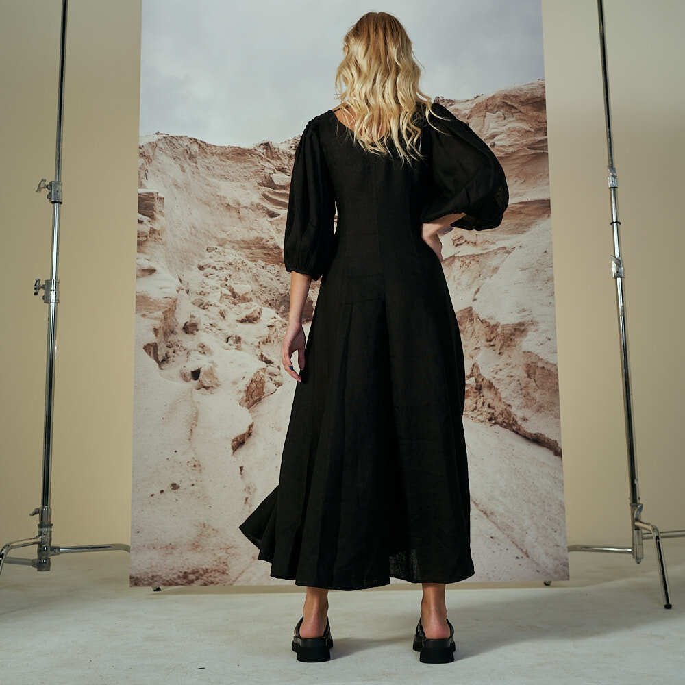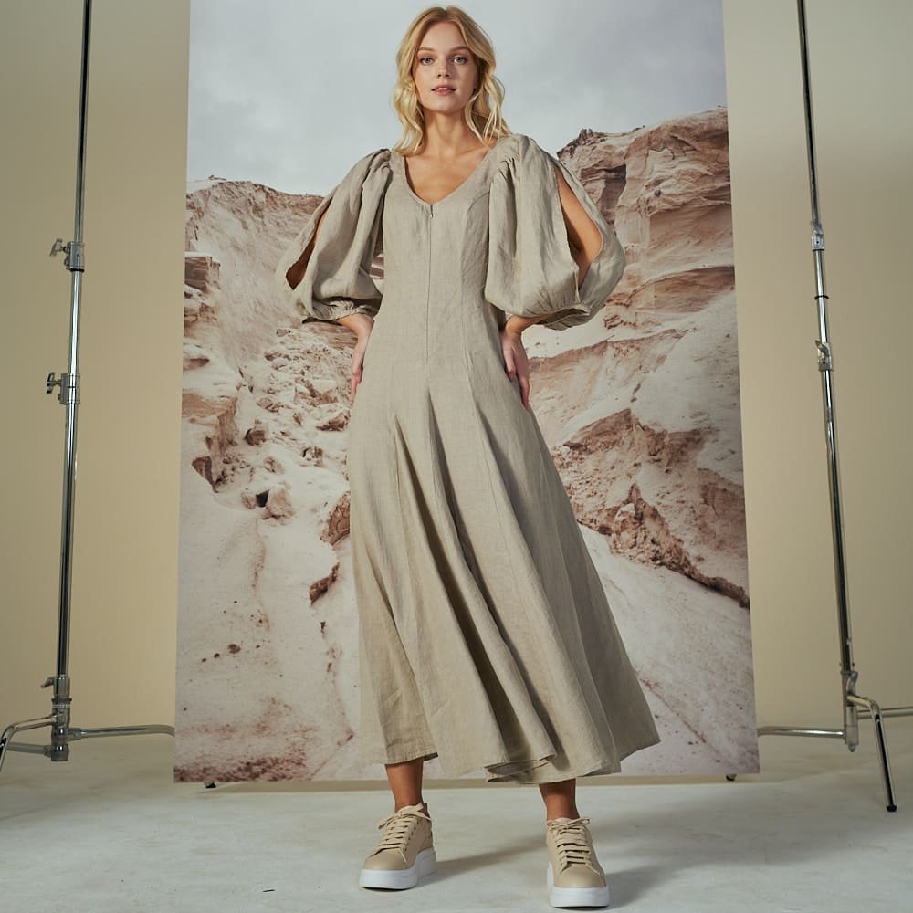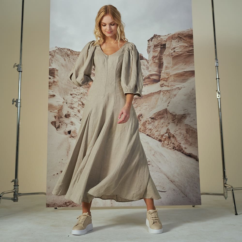 Pūstų rankovių lininė suknelė